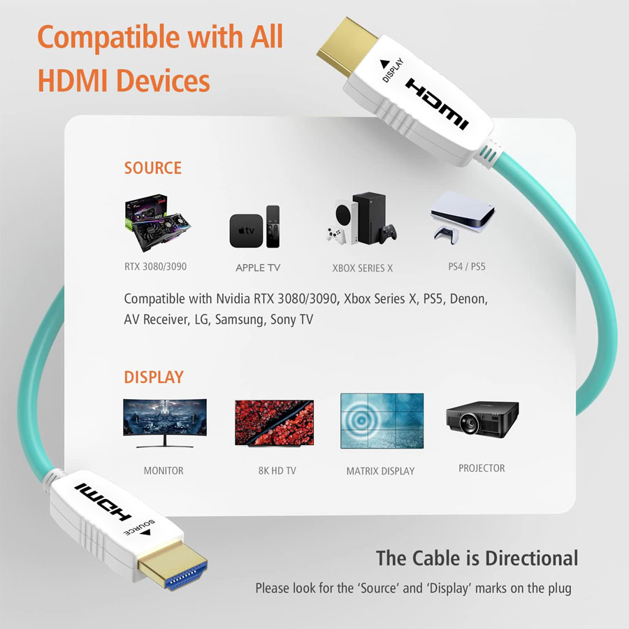 Kabeln stödjer full färg och hastighet (8K@60hz).